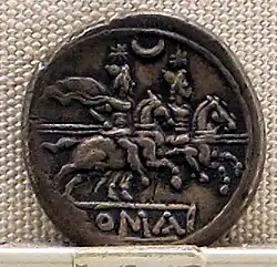 Marcus Helvius Blasion, although he had already handed over the government of the province to his successor, had to stay in Hispania due to a long illness.[7] Now recovered, with a guard of 6000 soldiers posted for him by the praetor Appius Claudius Nero, he was attacked by 20 000 Celtiberians near Iliturgi.[14] Marcus Helvius managed to repel the attackers, defeated them, and inflicted about 12 000 casualties on them.[8] Iliturgi was occupied by the Romans, and this victory earned Marcus Helvius Blasion an ovatio granted by the senate in 195 BC; however, he was ineligible for the triumphus, having fought in a province that belonged to another praetor.[14] Upon his arrival in Rome Marcus Helvius made delivery to the Republic of 14 732 pounds of uncoined silver, 17 023 coined and 119 439 of oscensian silver. Marcus Helvius was thus arriving in Rome two years later than planned.[14] Such quantities of wealth taken from Hispania give an idea of the unrest of the autochthonous peoples, the probable cause of the uprising.[50]