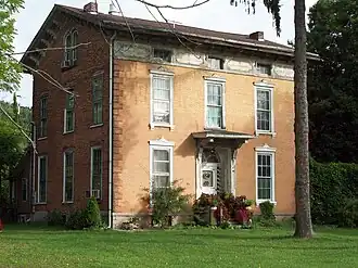 Built circa 1860, this historic home is a 2+1⁄2-story, rectangular brick building. It has a number of Greek Revival-style details, including a low-pitched, gable roof, a square plan, and a frieze beneath the eaves. The interior has a traditional Georgian center hall plan. Also located on the property is a Gothic Revival-style outbuilding.[2]