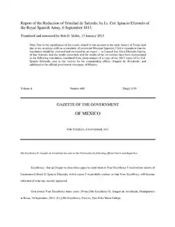 - ^ Bob D. Skiles, "Report of the Reduction of Trinidad de Salcedo by Lt Col Ignacio Elizondo of the Royal Spanish Army, 6 September 1813", ResearchGate DOI: 10.13140/RG.2.1.2471.0562, accessed May 6, 2015.