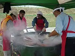 Ikeda has many attractions for visitors, with many locals speaking some levels of English and are very welcoming to visitors. The wine castle houses local Tokachi wines and shows visitors the wine making process. One can also taste the local wines or grape juice produced there. The castle also offers a large shop with many different local foods, drinks and crafts from Tokachi and Hokkaido and a restaurant overlooking the town. Every October Ikeda holds its annual wine festival, drawing visitors from all over Hokkaido. For 4,000 yen, one can sample as much Ikeda wine and beef as they wish. It is a very popular festival and is Ikeda's main event of the year.[4]