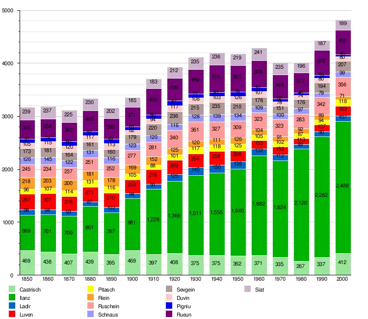 The total population of Ilanz/Glion (as of December 2020) is 4,797.[19]