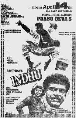 Indhu is a 1994 Indian Tamil-language dance film written and directed by Pavithran. The film stars Prabhu Deva (in his first leading role) and Roja, while Sarathkumar and Khushbu play supporting roles. It was released on 14 April 1994.