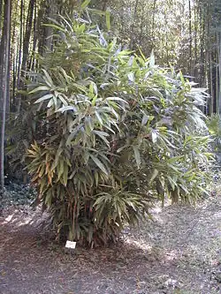 Indocalamus is a genus of about 35 species of flowering plants in the grass family (Poaceae),[3][2][4] native to central and southern China, Hainan, Vietnam, and Laos.[5] They are quite small evergreen bamboos normally up to 2 m (6.6 ft) in height, initially forming clumps and then spreading to form larger thickets. They have thick, glossy leaves.[6] Ruo leaves use to wrap foods like rice during dragon boat festival, originate in fujian refer to Indocalamus longiauritus originally but now are nonspecific to just about any leaf wrap.