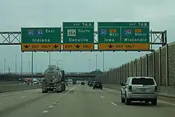 Interstate 94 (I-94) generally runs north–south through the northeastern portion of the US state of Illinois, in Lake and Cook counties. It is signed east–west in Illinois in accordance with its general alignment across the country, with west signage aligned with northbound travel and east signage aligned with southbound travel. I-94 in Illinois is 61.53 miles (99.02 km) long.[1]