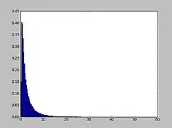 import matplotlib.pyplot as plt import numpy as np h = plt.hist(np.random.wald(3, 2, 100000), bins=200, density=True) plt.show()