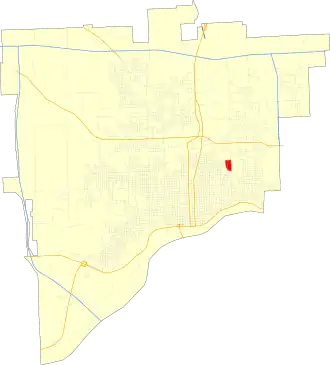 The historic district is made up of 34 resources, which includes 24 contributing buildings, two contributing sites, one contributing structure, six non-contributing buildings, and one non-contributing structure.[10] It is located on the east side of the city to the south of Garfield Park and the Duck Creek Parkway, which are across East 29th Street. Oakdale Memorial Gardens, where the orphan's graves are located, is to the east across Eastern Avenue. The former right of way for the Chicago, Milwaukee, St. Paul and Pacific Railroad, now in use by the Canadian Pacific Railway, is to the west and south.
