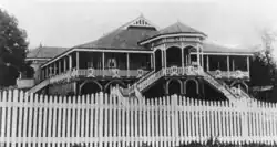 The grand two-storey timber building which is owned and used by The Ipswich Club was built for Ipswich butcher and pastoralist, J.P. Bottomley in 1916. Bottomley commissioned prominent Ipswich architect, George Brockwell Gill, to design the house as a family home named 'Tydfil'. In 1898 Bottomley purchased allotment 16 from the Cramb estate and the adjacent allotment, 15, was purchased in June 1914. The Ipswich City Council water rates book for 1915–16 notes a new house on site from 1 March 1916.[1]