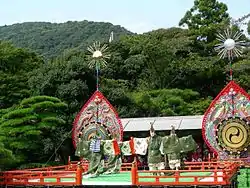 The shrine was foremost among a group of shrines which became objects of imperial patronage in the early Heian period.[11] In 965, Emperor Murakami ordered imperial messengers to be sent to report important events to the guardian kami of Japan. These heihaku were initially presented to 16 shrines including the Ise Shrine.[12]