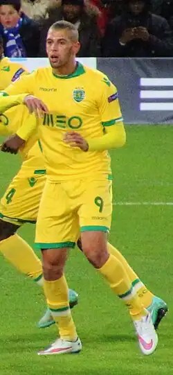 In the 2015–16 season, Slimani said it would be his last season and that he aspires to achieve the title of the Primeira Liga, which had been absent from the club for 14 years. The new and former Benfica coach Jorge Jesus said he would rely heavily on Slimani to win the titles and the start was in the Supertaça against Benfica and ended for Sporting with a single goal, achieving his second title.[13] At the start of the tournament, Slimani scored his first goal against Académica in an away match on 4 October 2015, and in the seventh round against Vitória de Guimarães, he scored his first hat-trick in the Portuguese league.[14][15] At the top of the 15th round, Slimani managed to score two goals against Porto's goalkeeper Iker Casillas[16][17] to lead the team back to the top of the league. After this game, Slimani scored in four consecutive games 6 goals against Vitória de Setúbal, Braga, Tondela and Paços de Ferreira. After two matches, he returned to score twice at Nacional.