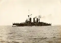 The Italian cruiser Pisa was the name ship of her class of two armored cruisers built for the Royal Italian Navy (Regia Marina) in the first decade of the 20th century. The ship participated in the Italo-Turkish War of 1911–1912, during which she supported the occupations of Tobruk, Libya and several islands in the Dodecanese and bombarded the fortifications defending the entrance to the Dardanelles. During World War I, Pisa's activities were limited by the threat of Austro-Hungarian submarines, although the ship did participate in the bombardment of Durazzo, Albania in late 1918. After the war she became a training ship and was stricken from the Navy List in 1937 before being scrapped.