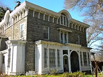 It is a two-story, ashlar granite dwelling which was designed in the Italianate style. It has a hipped roof with bracketed eaves, semi-circular arched dormers, and porch.[3]