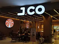 J.CO opened its first branch in Indonesia in 2005, with a total of 236 stores in 2020. In Singapore, they opened their first branch in 2008 with a total of three stores. In 2012, J.CO entered the Philippines with now 57 stores open as of 2022.[4] In December 2016, J.CO opened its first branch in Hong Kong. It currently has two stores in Hong Kong.