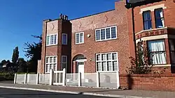 In the early 20th century, with Wood, he co-designed innovative houses, often with flat concrete roofs.[1][2] He influenced Wood towards a more-classical style.[12] In addition to residential projects, important joint works include two schools in Middleton, which are among the buildings highlighted by Pevsner in his 1942 article;[8] the architectural historian John H. G. Archer describes them as "remarkable in design, construction, and social provision" for that period.[1] Pevsner considers Sellers to be the leading architect for the two schools.[8] Also in Middleton is a terrace of three shops, which Historic England describe as "extraordinary in its use of the tiled panels", as well as for the flat roof in reinforced concrete.[13] At Rose Hill, Huddersfield, the pair completed a partial interior redecoration, including supplying furniture and chimneypieces; Historic England compare the work with Josef Hoffmann's Stoclet Palace in Brussels (1905) and Adolf Loos's Kärntner Bar in Vienna (1907), describing it as "among the most adventurous in Europe" of its time.[14]