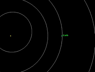 J002E3 is an object in space which is thought to be the S-IVB third stage of the Apollo 12 Saturn V rocket. It was discovered on September 3, 2002, by amateur astronomer Bill Yeung. Initially thought to be an asteroid, it has since been tentatively identified as the third stage of Apollo 12 Saturn V based on spectrographic evidence consistent with the titanium dioxide in the paint used on the rockets.[1][2][3] The stage was intended to be injected into a permanent heliocentric orbit in November 1969, but is now believed instead to have gone into an unstable high Earth orbit which left Earth's proximity in 1971 and again in June 2003, with an approximately 40-year cycle between heliocentric and geocentric orbit.[4]