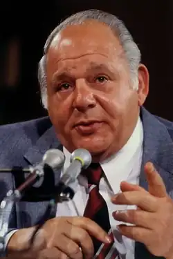On April 15, 1981, Frank Fitzsimmons announced he was stepping down as president of the Teamsters due to worsening health. Roy Williams and Jackie Presser were mentioned as possible successors, and some press reports indicated a fight for the presidency was under way. However, Presser announced he would not be a candidate and that he was supporting Williams instead.[25] Williams was opposed by Pete Camarata—a dock worker from Detroit, Michigan who was the co-founder of the Teamsters for a Democratic Union (TDU). When TDU activists picketed the Teamster convention at which Williams was elected, Presser declared the picketers "an ever-changing cast of union drop-outs, college students, aimless transients and an elite group of zealots who clearly have the clout over the sign carriers" and declared them to be under the control of "Marxist leaders from the International Socialist Party." He also repeatedly referred to Camarata as "Commie-Rat-A."[26] Camarata accused Presser of hiring a "squad of thugs" to intimidate delegates and provoke violence—allegations which would later prove accurate.[27]