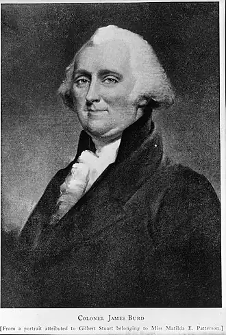 Born in Ormiston, near Edinburgh, Scotland, the son of Edward Burd, James Burd came to Philadelphia, Pennsylvania in 1747 or 1748 where he worked as a merchant. On May 14, 1748, he married Sarah Shippen, daughter of former mayor Edward Shippen of the prominent Shippen family of Philadelphia. The couple had eleven children, eight of whom lived to maturity, including Edward Burd.