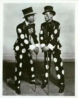Dixon was known for his inventive and eccentric dance moves, being especially good at mimicry and use of a cane. His signature move, which was imitated by others, was to keep his arms stiff by his side while twisting his shoulders.[3] He developed a duo dancing act with Jack Corcoran, and joined Lew Dockstader's minstrels, but then dissolved his partnership with Corcoran and joined with Jimmy Doyle.[2] James Doyle (c.1888 – June 13, 1927) had been born in Halifax, Nova Scotia, and had also worked in Dockstader's troupe, though not at the same time as Dixon. The pair devised a vaudeville act in which they challenged each other to perform increasingly intricate and complex steps, including soft shoe, tap, and clog dancing, interspersed with comic patter and short sketches. In 1912 they were added to the line-up of a revue, Let George Do It, and then joined a show at the Winter Garden Theatre which also included Al Jolson and Nora Bayes.[1]
