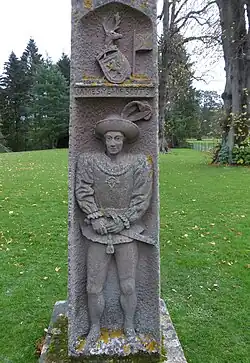 Albany rewarded Douglas for his support by allowing him to resume hostilities with England[23] but their fortunes suffered a serious reversal in September 1402 when English troops defeated their large army at the Battle of Homildon Hill. Numerous Scottish nobles and their followers were captured, including Douglas himself, Albany's son Murdoch, and the earls of Moray, Angus and Orkney. 1402 also saw the death of Rothesay, that of Alexander Leslie, Earl of Ross and Malcolm Drummond, Lord of Mar. This power vacuum was inevitably filled by individuals who were not involved in national politics.[24] In the years between 1402 and 1406, the northern earldoms of Ross, Moray and Mar were without adult leadership and with Murdoch Stewart, the justiciar for the territory north of the Forth in an English prison, Albany found himself reluctantly having to ally with his brother the Earl of Buchan, and Buchan's son, Alexander, to counter the ambitions of the Lord of the Isles.[25] Douglas's absence allowed King Robert's allies Henry Sinclair, Earl of Orkney, and Sir David Fleming of Biggar to become the main political force in the Lothians and Scottish Marches.[24]