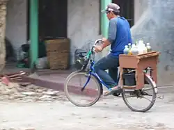 Sukoharjo in Central Java, in particular, is believed to be one of the centers of jamu tradition.[8] Many of the Mbok Jamu jamu sellers ladies are hailed from this town. The traditional jamu herbal traders in Sukoharjo have established the statue of the jamu seller as Sukoharjo's identity in Bulakrejo. Commonly called "jamu herbal seller statue", it depicts a farmer and a jamu gendong herbalist carrying her wares. Sukoharjo regions, particularly sub-district Nguter,[9] is known as the place of origin of Mbok Jamu gendong herbalist in many big cities, such as Jakarta, Bandung, Bogor, and Surabaya.[10]