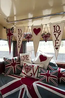 In 2005, Constantine introduced coloured felt wool to her designs (which had previously been created predominantly in cream and white linen), and released the Union Jack and heart design for which she has since become renowned. Constantine is widely credited as the starting point of a Union Jack renaissance in the UK,[12] and is instantly recognisable in interior design for her patriotic themes.