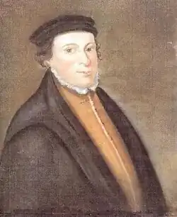 Jan de Bakker's father was a sexton in Woerden and also tenant of the brickworks, and his surname may have been derived from that profession.[3] Bakker was a pupil of Johannes Rhodius (Hinne Rode), headmaster of St. Jerome School of the Brethren of the Common Life in Utrecht, who was a proponent of Sacramentarianism.[4] The Dutch Sacramentarians rejected the sacraments of the Catholic Church and denied that the host consecrated at Mass was the real body and blood of Jesus Christ.[5] They called indulgences and pilgrimages mere idolatry and were critical of the low moral standards and conduct of the clergy. In 1520 De Bakker's father called him back to Woerden, concerned that some of his views were contrary to the Church's doctrine and could get him in trouble with the authorities. De Bakker transferred to the Old University of Leuven and in 1522 completed his education there.