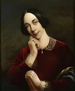 Jane had a long friendship and correspondence with the writer Geraldine Jewsbury. The two women first met in 1841, when Jewsbury's letters to Carlyle expressing admiration for his work[16] and her religious doubts prompted him to extend an invitation to 5 Cheyne Row. Jewsbury was going through a depressive time, but she also contacted Thomas in the hopes of entering the literary realm in England. When Carlyle floated the idea of a second visit in 1843, Jane hesitated, finally admitting to Carlyle: "'Why I am afraid that having her beside me from morning till night would be dreadfully wearing'!" She complained of how Jewsbury was "always in a state of emotion! dropping hot tears on my hands, and watching me and fussing me".[17] While Jane's letters were destroyed by Jewsbury in keeping with their agreement to destroy their correspondence before their deaths, Jane's sudden death prevented her from destroying Jewsbury's half.[18] Jewsbury's letters evince her passionate feelings for Jane: "I feel towards you much more like a lover than a female friend".[19]