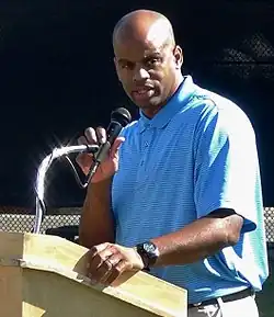 ![]() Prioleau at a fundraising event for San Jose State in 2017. | |
