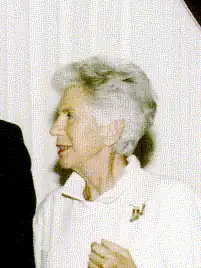 Jeanne de Clarens with James Woolsey (centre) and Reginald Victor Jones in 1992