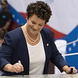 Boykin first worked as an engineer in the nuclear engineering division at Newport News Shipbuilding before moving through the ranks and eventually becoming president of the company.[4] She is the first woman president of Newport News Shipbuilding, the first in over 133 years of operation.[5] She runs the largest shipbuilding operations in the United States, including the only one that builds nuclear-powered aircraft carriers[4] and one of two that makes nuclear-powered submarines.[1][5] The shipyard is currently working on Gerald R. Ford-class aircraft carriers.[6][7] The shipyard employs over 22,000 personnel.[8][5][4]