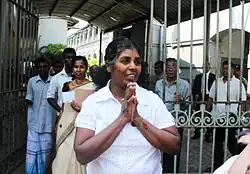 Jeyakumari Balendran is a Sri Lankan Tamil woman and an activist campaigning for the families of those who disappeared while in Sri Lankan military custody.[1] Sri Lankan government forces currently have Ms Jeyakumari and her 13-year-old daughter Vipoosika in detention at an unknown location. They gained prominence during British Prime Minister David Cameron’s visit to Jaffna in November, when Vipoosika’s desperate pleas for the return of her missing brother gained widespread coverage. Civil society campaigners have expressed concern for the safety of mother and daughter.[2][3][4]