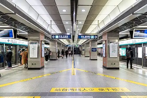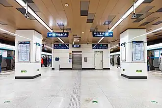 Jiaomenxi Station[1] (simplified Chinese: 角门西站; traditional Chinese: 角門西站; pinyin: Jiǎoménxī Zhàn) is a subway station of the Beijing Subway.[2] This is an interchange between Lines 4 and 10.[3] The station handles 91,600 transfers between Lines 4 and 10 per day.[4]