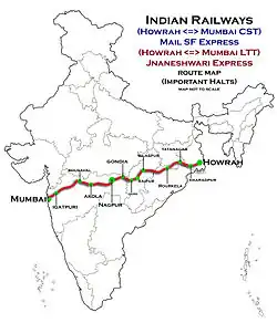 2. ^ a b Anand, Siddharth. "12101/Jnaneswari Express (PT) - Lokmanya Tilak Terminus to Kolkata Shalimar CR/Central Zone - Railway Enquiry". indiarailinfo.com. Retrieved 11 June 2022.