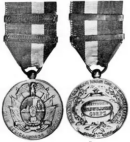 In the Colonies and Boer Republics which became the Union of South Africa in 1910, several unofficial military decorations and medals were instituted and awarded during the nineteenth and early twentieth century. The Johannesburg Vrijwilliger Corps Medal is an unofficial private campaign medal which was instituted in 1899 by Lieutenant Colonel S.H. van Diggelen, the founder and Commanding Officer of the Johannesburg Vrijwilliger Corps, for award to the officers and men of his unit.[1][2]