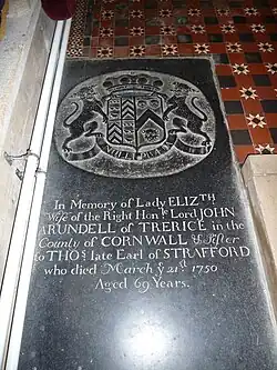 • Arundell married Elizabeth Wentworth on 2 Jan 1722, daughter of Sir William Wentworth of Wakefield, Yorkshire, England.
