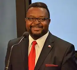 John Godson (birthname Godson Chikama Onyekwere) was born in Nigeria to an Igbo family from Umuahia, Abia State. He moved to Poland in 1993, and in 2001 became a Polish citizen. In 2008, he became a member of the Łódź City Council. In 2007, he unsuccessfully ran in the Polish parliamentary election. In 2010, he was re-elected for the City Council with 4736 votes, the second best result out of almost 800 candidates. As former MP Hanna Zdanowska was elected Mayor of Łódź in the same election, Godson replaced her as a member of the Sejm. He was sworn in on 14 December 2010. The "Obama bump" is considered by many the reason for the many votes he received during the Sejm campaign.[1] His supporters were known to cheer "Wiwat! Wiwat polski Obama!" ("Long live the Polish Obama!").[2] John Godson was re-elected as a member of the Polish parliament on 9 October 2011 with 29,832 votes [3]