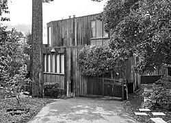 John Kruse (1918-2000) was an American architect born in Davenport, Iowa. Kruse attended Cornell and MIT, and served in World War II in the U.S. Navy as a lieutenant.[3] After returning from war, Kruse joined the office of renowned modernist architects John Elkin Dinwiddie and Erich Mendelsohn to start his career. He left the firm in 1948 with his colleague Henry Hill to join Hill's personal practice as the structural expert. Kruse made partner in 1965 to form Hill & Kruse Architects. This prolific partnership designed more than 500 residences and commercial buildings in the California, Hawaii, Connecticut, Illinois, Kentucky, Quebec, and El Salvador.[4] Their design helped define Second Bay Tradition, which combined International Style with Northern California's regional vernacular and wood materials.[4]