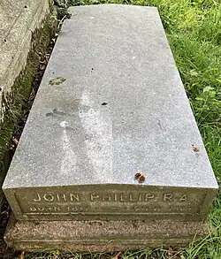 In 1867, Phillip died on 27 February 1864, aged 49, of a stroke while visiting William Powell Frith in Kensington and is buried in Kensal Green Cemetery, behind the grand monument to William Mulready on the central avenue.