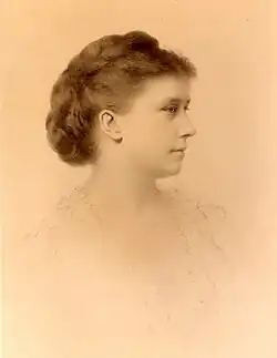 In 1861, Adams married Frances "Fanny" Cadwalader Crowninshield (1839–1911),[17] daughter of George Crowninshield (1812–1857) and Harriet Sears Crowninshield (1809–1873) of the politically powerful Crowninshield family. Fanny was the granddaughter of former United States Secretary of the Navy under presidents Madison and Monroe, Benjamin Williams Crowninshield.[18][19] Their children were: