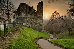 During these events, on 1 September 1317, the rebel knights assaulted and "despoiled" the controversial Bishop Elect Lewis de Beaumont,[14] his brother and Constable of the palatinate castle of Norham-upon-Tweed Henry de Beaumont, and two cardinals, Gaucelin de Jean and Luca Fieschi, as they approached Rushyford, between Woodham and Ferryhill. The two cardinals were travelling from London to Scotland in order to arbitrate a truce with Robert the Bruce[15] while the Beaumont brothers were headed to Durham, accompanying the cardinals on their way North so that Lewis could be enthroned as bishop in their presence.[16] After despoiling the travellers, Sir Gilbert and Sir John imprisoned the Beaumonts at Mitford Castle, "delivering two horses to the cardinals to go freely to Durham" and later freeing Lewis de Beaumont on 17 October.[17][18] Sir John de Lilburne was listed among those who attacked the party of travellers[19] but was pardoned for his involvement with Sir Gilbert (with the exception of the robbery committed upon the cardinals) on 19 March 1318 in accordance with the terms granted upon surrendering Knaresborough Castle and again on 12 November, forfeiting a portion of his lands for adhering to the Earl of Lancaster's rebellion,[20] some of which were later restored to the family after Sir John's death.[21] In fact, despite his transgressions, Sir John was deemed to have borne "himself well towards the late king and the king and died in the fealty of the latter without any suspicion of evil against him" albeit an "adherent of the Scots with Gilbert de Middleton, traitor to the late king".[22]