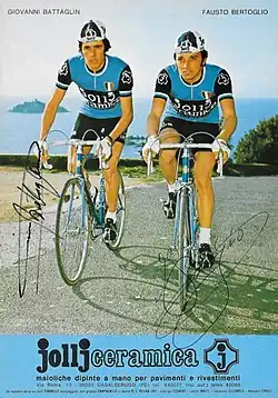 Jollj Ceramica was an Italian professional cycling team that existed from 1973 to 1977.[1] Fausto Bertoglio won the general classification of the 1975 Giro d'Italia with team.[2]