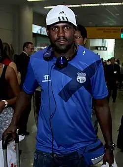 Quiñonez was given the nickname El Pulpo[3] (The Octopus) by Emelec's fans because of his intelligence on the field, speed, great marking skills and long legs. He is an overall good player that sometimes is also used as a center back and has also scored some goals both from distant shots and headers.