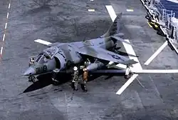 In 1975, Anderson attended the United States Naval Test Pilot School located at Naval Air Station (NAS) Patuxent River in Patuxent River, Maryland.[1] He graduated with Class 70 and remained at NAS Patuxent River to participate in a number of test programs including development of procedures to operate the Harrier from the Landing Helicopter Assault (LHA) class of naval vessels. In 1982, Anderson implemented these procedures during a deployment to the Mediterranean with VMA-231 aboard the USS Nassau (LHA-4).[3] He participated in the testing of the prototype YAV-8B Harrier II and supported Initial Operational Test and Evaluation (IOT&E) of the AV-8B Harrier II.[4] Anderson served in increasingly responsible roles including executive officer of VMA-231, researcher at the Institute for Defense Analysis, and systems and engineering officer for the AV-8. In 1985, he was selected to attend the National War College at Fort Lesley J. McNair in Washington, D.C. After graduation, Anderson was assigned as the commanding officer of VMA-331 flying the McDonnell Douglas AV-8B Harrier II. In 1990, he was assigned as the commanding officer of Marine Aircraft Group 13 in Yuma, Arizona. In 1993, Anderson was selected for promotion to brigadier general and served as director of the USMC Operations Division and then as vice commander of Naval Air Systems Command.[1]