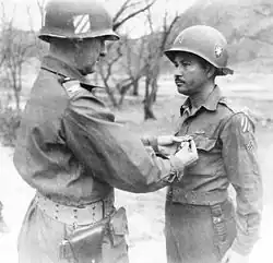Cordero-Dávila served with the regiment in World War II for over three and a half years, advancing from the Regimental S-4 to Battalion Executive Officer, Battalion Commander of the regiment's 3rd Battalion, and Regimental Executive Officer. He also served for short periods during World War II as the Regimental Commander. After the war concluded, Cordero returned to the reserve for six months, then taking command of the Puerto Rico National Guard's 296th Combat Group.[1] On September 10, 1950, Cordero was activated again due to the Korean War, commanding the 296th and overseeing Campamento Tortuguero, Campamento Salinas and Forts Losey and the Henry Barracks.[2]