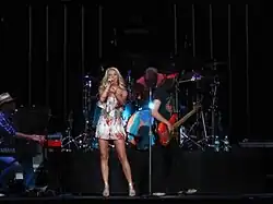Hough dated fellow country singer Chuck Wicks from August 2008 to November 2009; when the two had a mutual break-up, it inspired Hough's song "Is That So Wrong".[69][70] Hough dated Ryan Seacrest from April 2010 to March 2013.[71][72][73] In February 2014, it was revealed that she had begun dating NHL player Brooks Laich, then of the Washington Capitals, in December 2013.[74] The couple announced their engagement on August 18, 2015,[75] and were married on July 8, 2017.[76] They separated in 2020, but later attempted to reconcile.[77][78] Hough filed for divorce on November 2, 2020; the divorce was finalized on February 22, 2022.[79]
