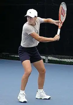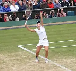 Henin was known for her all-court style of play and for being one of the few female players to use a single-handed backhand. Tennis experts cite her mental toughness, the completeness and variety of her game, her footspeed and footwork, and her one-handed backhand (which all-time great John McEnroe described as "the best single-handed backhand in both the women's or men's game")[4] as the principal reasons for her success.[5][6] She retired from professional tennis on 26 January 2011, due to a chronic elbow injury.[7]