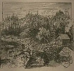 This river flows across the mountains of the Laurentides and empties into the Gulf of Saint Lawrence about fifteen miles from the Saint-Augustin River. From the high tide mark up to lake Kécarpoui the river is not navigable, even for canoes. According to the surveyor J.C. Giraud (report of 1901) there is no land suitable for cultivation on the sides of this river or the lakes that feed it. The trees are fir and spruce with dimensions of no more than 7 to 8 inches in diameter. Salmon and trout frequent this river. The river is frequented by hunters for game and fur, which they find in quantity. Kécarpoui comes from a montagnais word meaning "where there is ribbon [ruban]".[4]