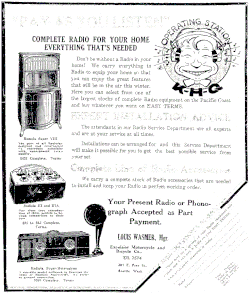 - ^ "New Stations", Radio Service Bulletin, March 1, 1922, page 2. Limited Commercial license, serial #307, issued for operation on 360 meters for a period of three months to Louis Wasmer in Seattle, Washington.