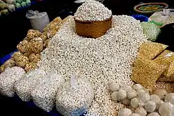 Kabok or Kapok is a Meitei Manipuri ethnic food item, generally made up of puffed rice, roasted rice and molasses. It is available in many flavours, including honey flavor, sugarcane flavor and many others. It is a very popular snack in the Indian state of Manipur, especially among the Manipuri ethnicity. Tronglaobi village is the largest Kabok producing village in Manipur[1][2][3][4][5]