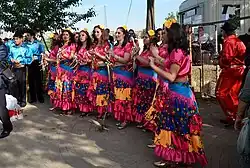 In Turkey's western cities of Edirne and Kırklareli, Kakava is celebrated joyfully. Kakava celebration in Edirne nowadays takes the form of an international festival, which is also supported by the governor and the mayor of Edirne. The official part of the Kakava festival takes place in Sarayiçi, the place where traditional Kırkpınar oil-wrestling tournament is held each year. After light the Bonfire and jump over it. Music playing and Belly dancing is performed. The official part ends after the distribution of rice dish pilaf to the around 5,000 attendees.[6] The celebration continues in the dawn of the next day at the bank of Tunca River.[7][8][9]