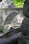 There are two versions about the origin of the village's name.[2] According to first version Kakopetria name is a compound of greek words "kako" (bad) and "petra" (stone, rock).[2] According to second version the name comes from a legend about a big rock called "Petra tou Androgynou" (Couples' Rock).[2] That rock is now close to the bridge and newly wedded couples would sit on it, until according to legend the rock rolled over one couple and that rock they called bad rock.[2]